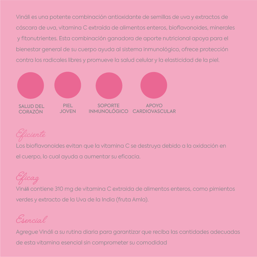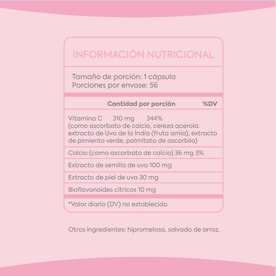 Nuestra Vitamina C con extracto de semilla de uva y bioflavonoides combina poderosos antioxidantes para fortalecer tu sistema inmunológico 🛡️, mejorar la salud de tu piel y combatir el daño de los radicales libres. Un boost de bienestar y protección en cada cápsula.